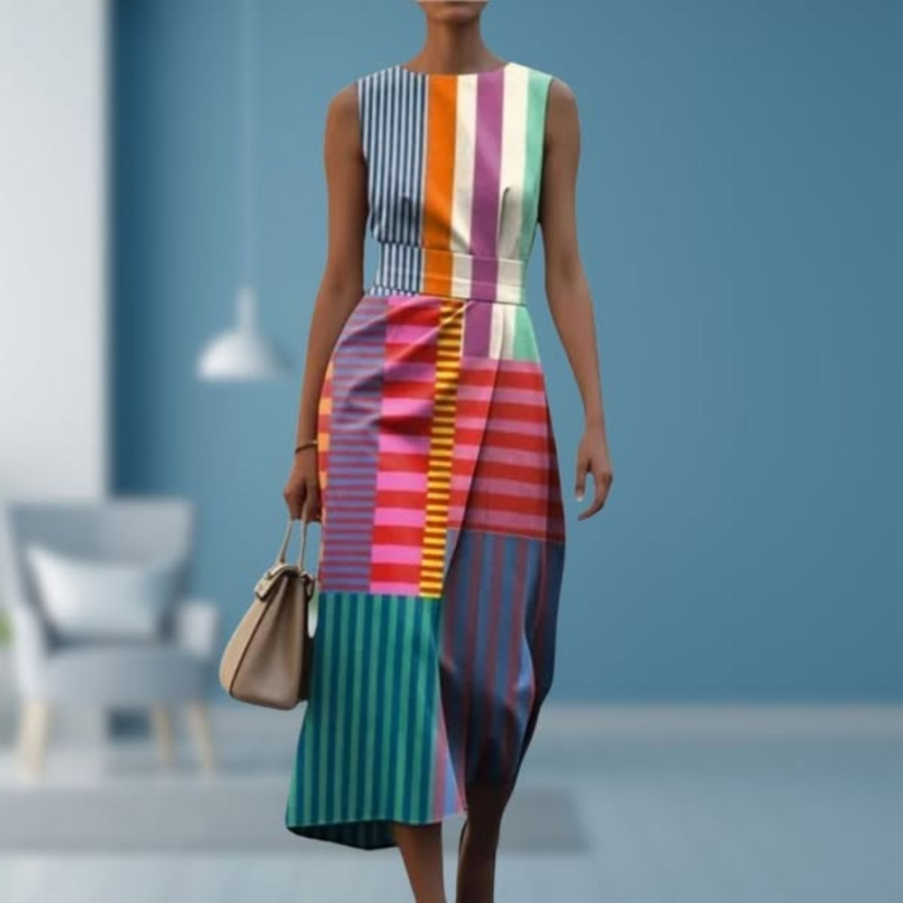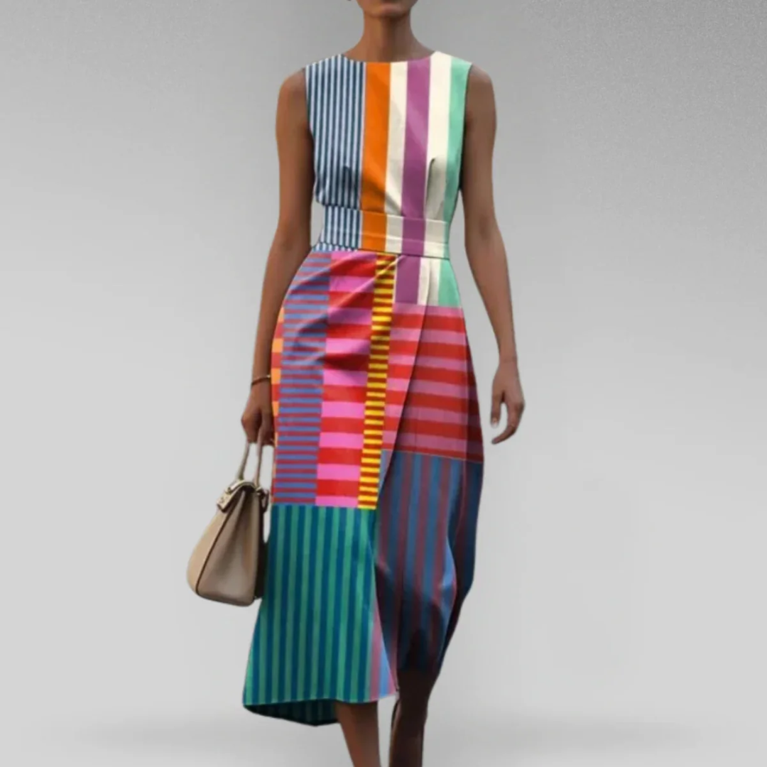 Tiffany™ - Wielokolorowa sukienka bez rękawów z nadrukiem